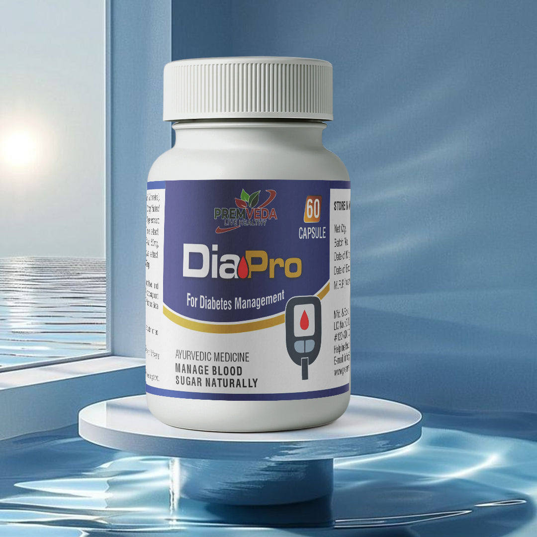 Premveda DiaPro is a powerful Ayurvedic formula designed to naturally manage blood sugar levels and support overall health. Enriched with potent herbs like Jamun, Cinnamon, Giloy, Shilajit, and Punarnava, it helps regulate glucose metabolism, supports pancreatic health, and protects vital organs such as the heart, kidneys, and liver.