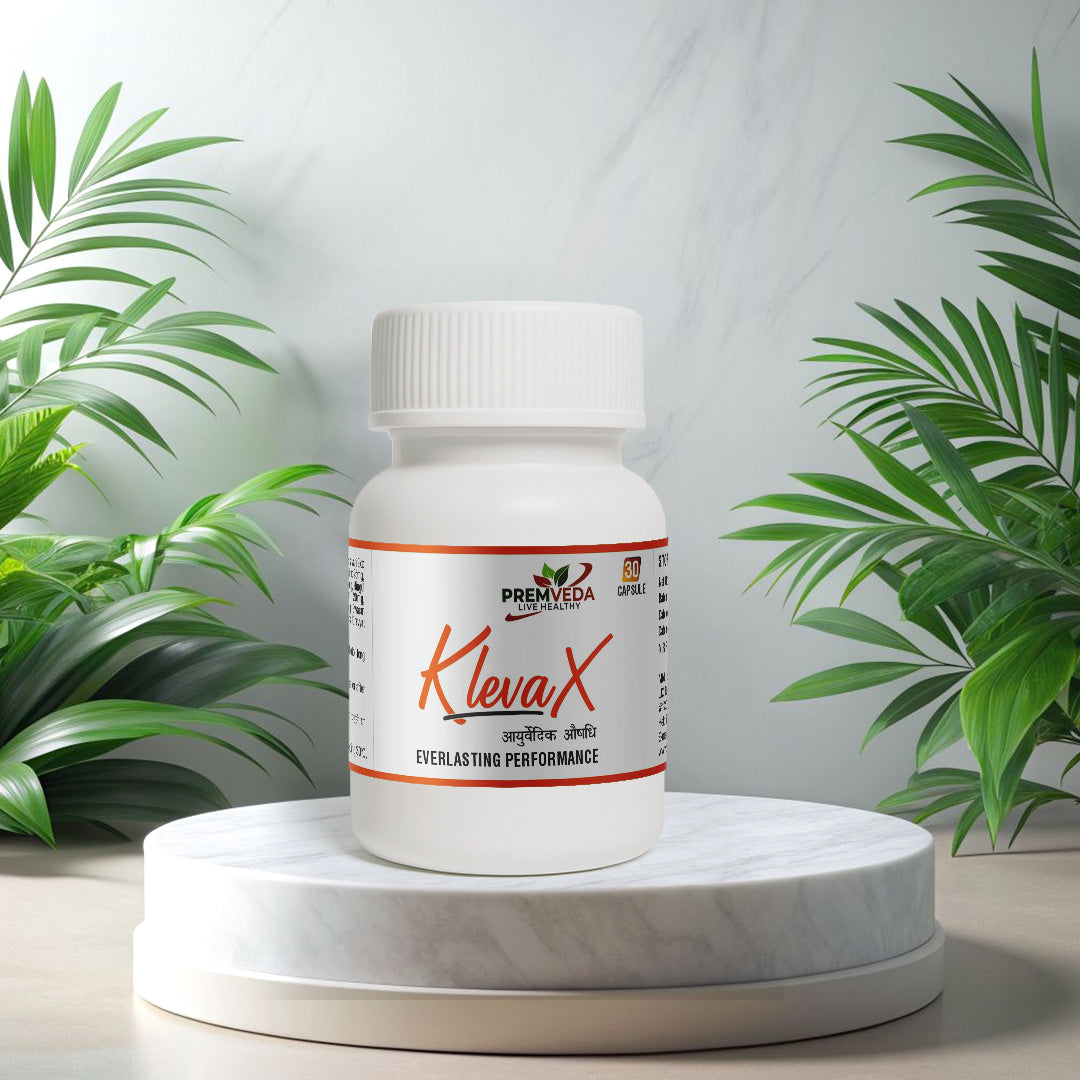 KlevaX is a premium Ayurvedic supplement formulated to restore stamina, energy, and overall vitality. Powered with traditional herbs like Ashwagandha, Shatavari, Safed Musli, Shilajit, and more, it supports strength, enhances libido, and promotes complete wellness.